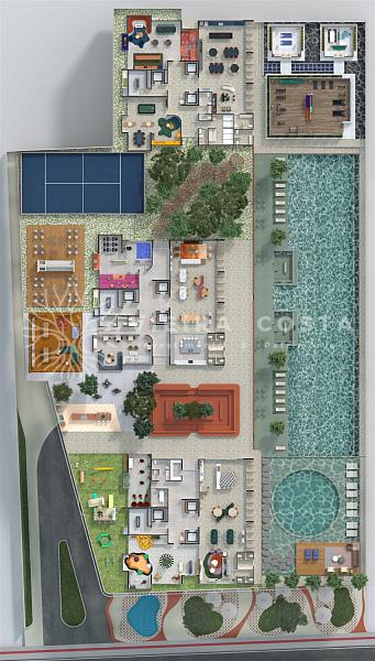 Com mais de 30 itens de lazer, ambientes planejados pela renomada arquiteta Vanessa Larré, que imprime sua personalidade em uma linda fachada "em movimento", ou seja a tecnoogia Windscreen da Hunter Douglas com placas que se movimentam organicamente, simulando o movimento do oceano.